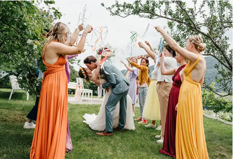 Colorful Charm: Farbenfrohe Hochzeit im Weingarten